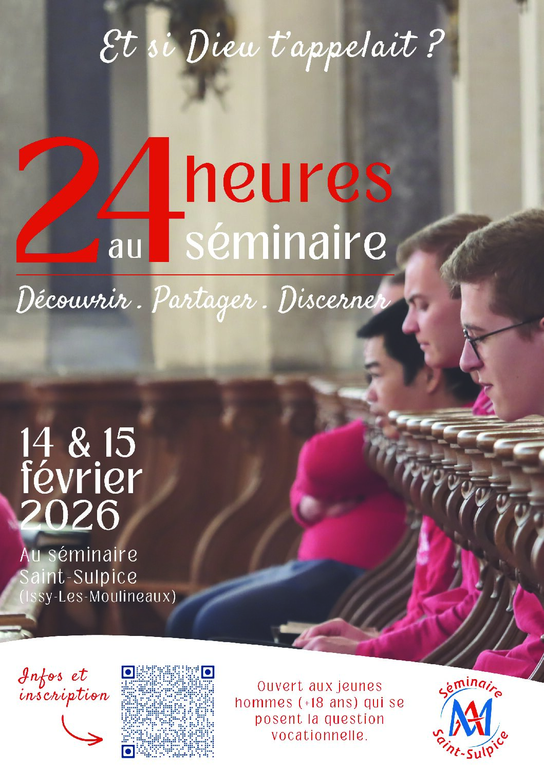 Pour les jeunes hommes à partir de 18 ans qui se posent la question de l’appel du Seigneur dans leur vie et qui souhaitent mieux connaître la réalité du séminaire et du cheminement vocationnel.